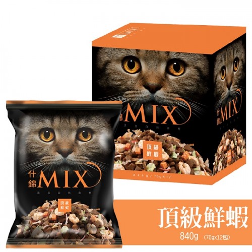 台灣【MIX什錦】 貓食 頂級鮮蝦 840G(12包/盒) 70G/包