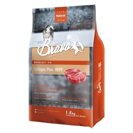 台灣 Bravo 自然禮讚 膠原蛋白配方-牛肉狗糧 1.5KG/7KG