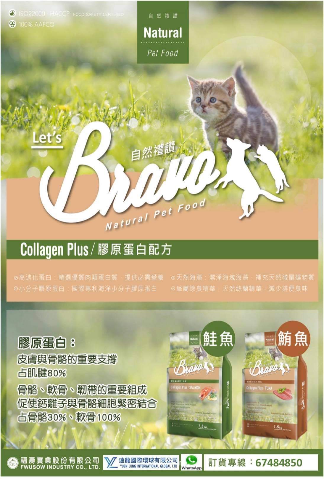 台灣 Bravo 自然禮讚 膠原蛋白配方-鮭魚貓糧 1.5KG/7KG